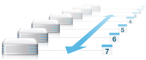 Au quotidien et répliquées sur site pour une haute disponibilité, ainsi que dans une salle blanche externe pour une reprise sur incident. Profitez d´une protection des données en quasi- continu (near-CDP) pour toute application virtualisée avec basculement et retour arrière automatiques.